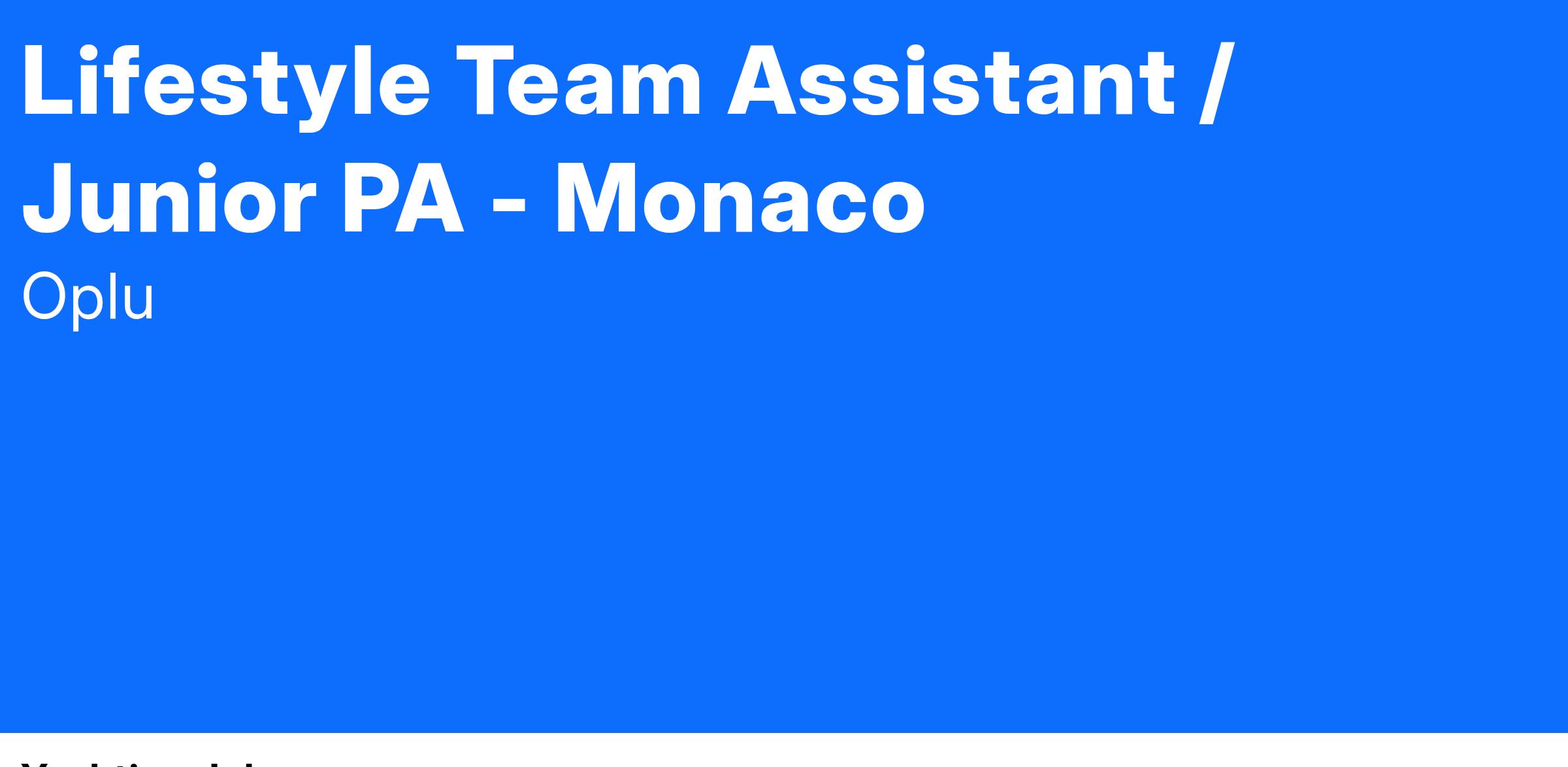 A superb opportunity for a bright, discreet, and highly organised Lifestyle Team Assistant / Junior PA to join a prestigious private office supporting a UHNW individual based in Monaco.